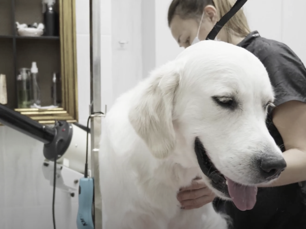 Для этого этапа ухода берётся 2-3 компонента, опять же смешивается с водой и кислородом и наносится на питомца. После всех трёх этапов собаку обрабатывают профессиональными спреями и расчесывают.